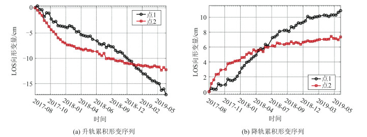 Methods Firstly, we carry out a quick detection across wide area using differential InSAR (DInSAR) technique with 6 ALOS-2 PALSAR-2 ascending images. DInSAR technique can observe the subtle deformation of landslide surface during the period between two SAR observations, so the active deforming landslides can be efficiently distinguished from stable areas. Nevertheless, the performance of DInSAR is often limited by temporal and spatial decorrelations induced by dense vegetation coverage, etc. To retrieve the temporal evolution of these landslides, detailed monitoring of specific landslides is carried out using time-series InSAR technique with 112 Sentinel-1 ascending and descending images. Time-series InSAR technique can overcome the limitation of traditional DInSAR technique in spatial-temporal decorrelation, and improve the deformation measurement accuracy. Therefore, the combination of DInSAR and time-series InSAR is adopted to accurately monitor single landslide, and efficiently detect landslides in Jiuzhaigou area.