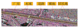 2.2 斑点噪声星载SAR图像实验主要比较斑点噪声干扰下不同图像分割算法的效果。其中,数据源使用高分辨率星载双极化数据,截取了武汉城区的部分影像。影像的原始分辨率为1 m×1 m,分割图像等效视数为1×1。图 5对应图 4中的A区道路,是实验的主要研究对象,其中,地表是裸土,道路的材质是水泥,对应图中灰色部分,并且在道路边缘处存在较为严重的噪声污染。
