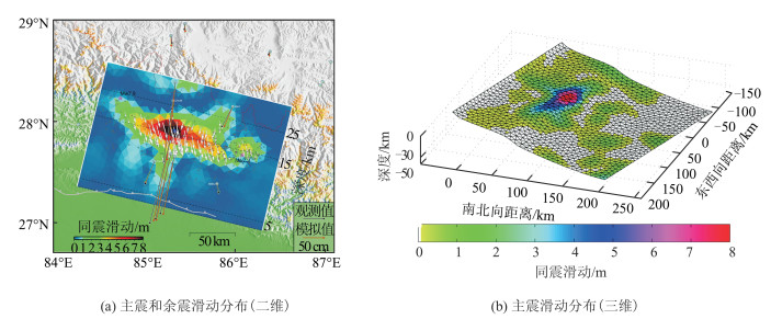 - 2015年尼泊尔地震同震滑动及震后余滑的三角位错模型反演