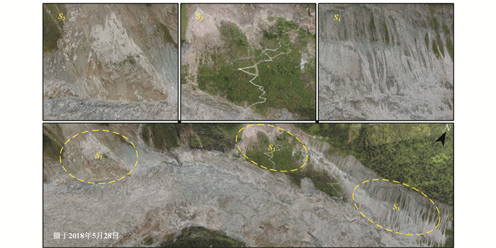 | 图 10 滑坡体S1~S3无人机航拍影像 Fig. 10 Unmanned Aerial Vehicle Images of Landslides S1-S3 |