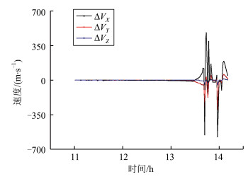 | 图 13 观测代码s8614a实时定位归算与事后定轨结果的速度差值 Fig. 13 Velocity Difference of Observation Code s8614a Between Real-Time Positioning Reduction and Post-Time Orbit Determination |