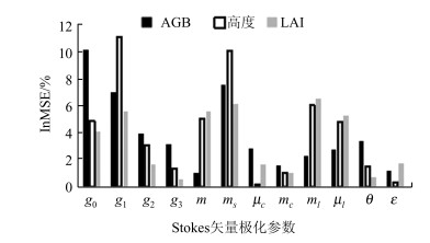 从图 3可以看出,12个Stokes参数在各参数反演中的重要性与§4.1各参数与油菜长势参数的相关性并不完全一致。所有参数在AGB反演中,