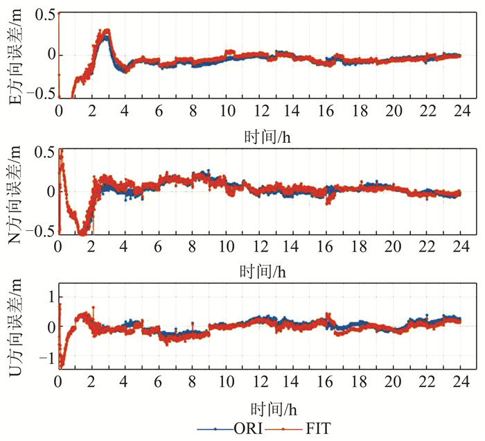 如图 4和图 5中FIT模式所示,在分区综合改正数中断时刻,采用拟合生成的改正数进行补充,定位结果连续且能够达到与采用原始分区综合改正数相近的定位精度。