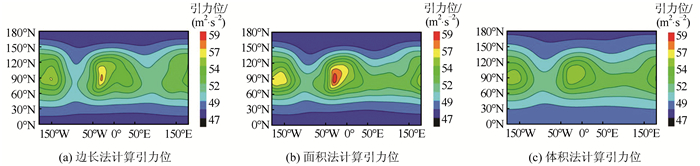 3种方法中密度也不相同,需要单独计算。利用边长法所计算引力位为: